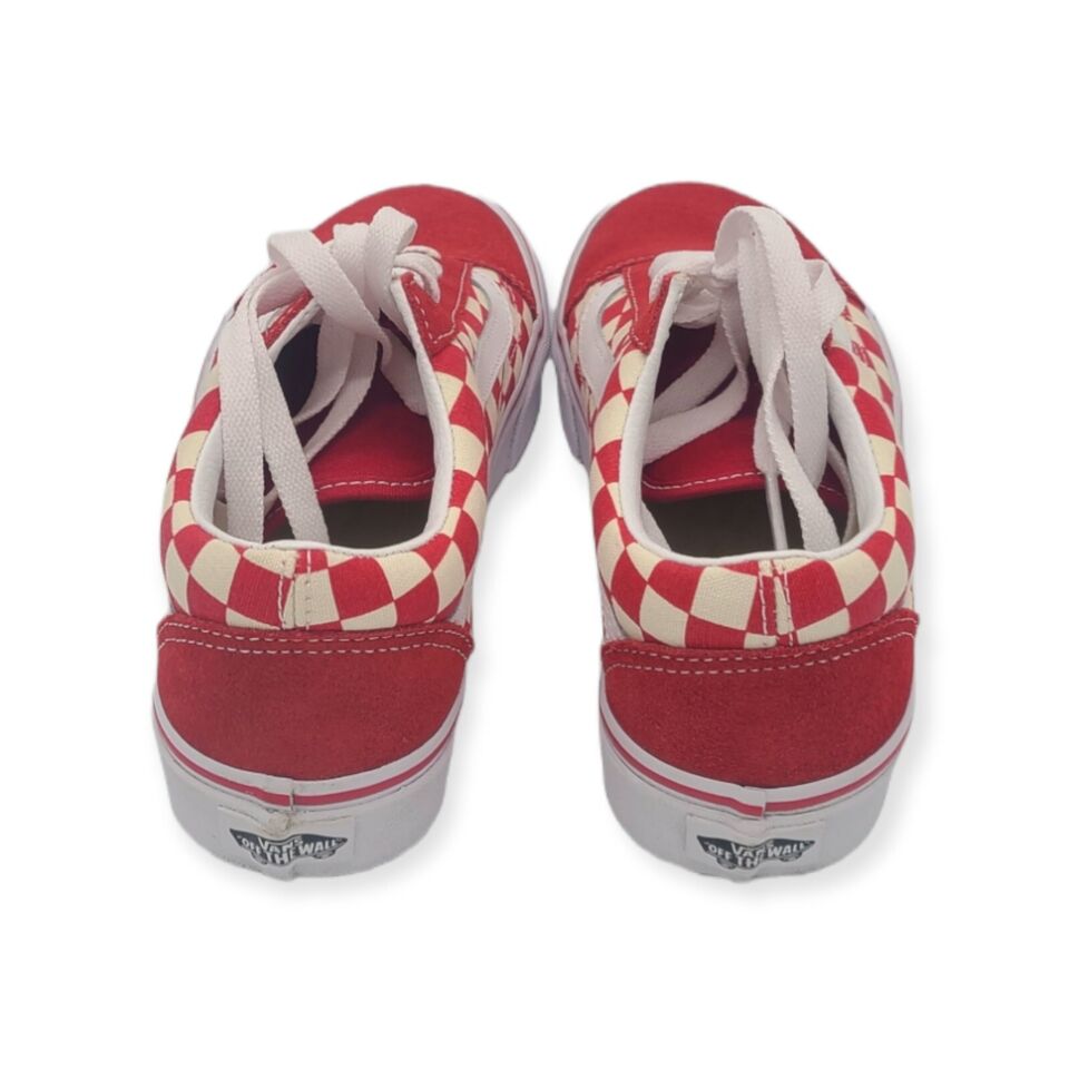 Step into timeless style with the VANS Old Skool Red Women Checkered Low-Top Skate Sneakers. Featuring the signature checkerboard pattern in vibrant red, these sneakers offer a bold twist on a classic silhouette.